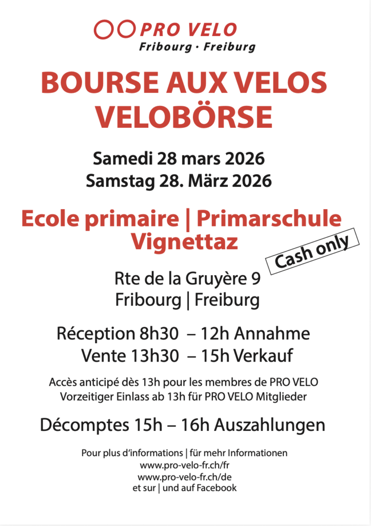 PRO VELO Freiburg organisiert drei Velobörsen pro Jahr: zwei in Freiburg und eine in Bulle.